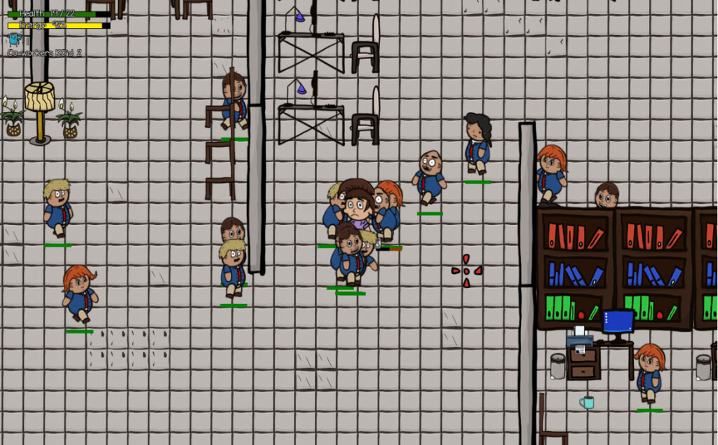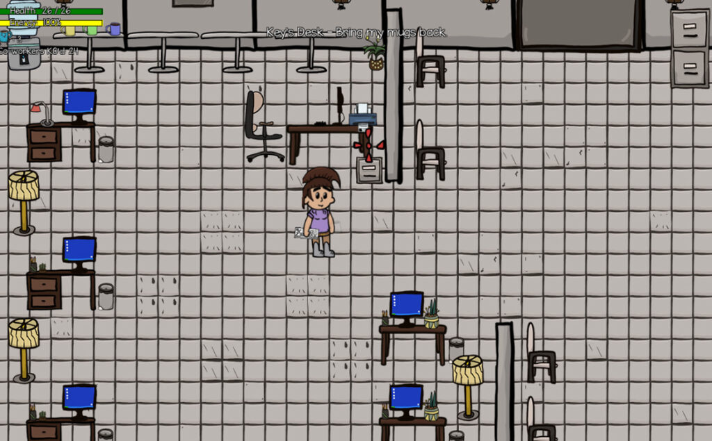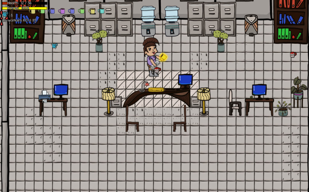 In a monotonous call center, Key, a disillusioned worker, discovers a hidden power: the ability to cast spells with his keyboard. With his newfound ability, Key is determined to track down and rescue all the mugs co-workers stole from him. In his ultimate journey to recover his mugs and get that promotion he deserves. Key learns that everyone is out to get him. Take on the hordes of co-workers while retrieving mugs in this top-down survivors-styled adventure and collect the golden mug.