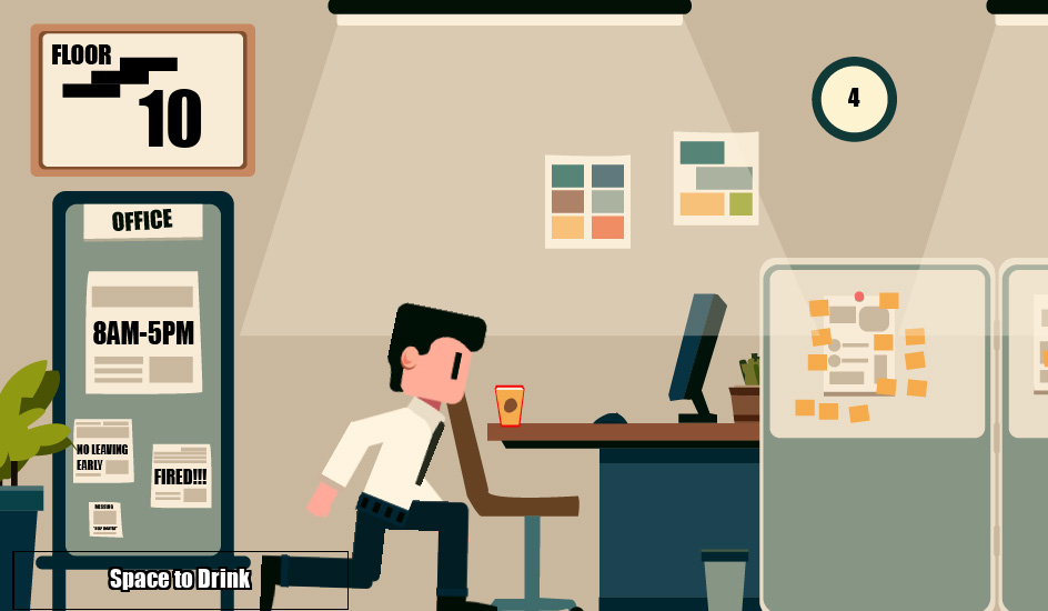 Play as a quiet quitting salesperson who wants to leave the office early. Avoid the managers, don’t alert your co-workers, and leave before anyone else! The leaderboards will be live after the game jam.