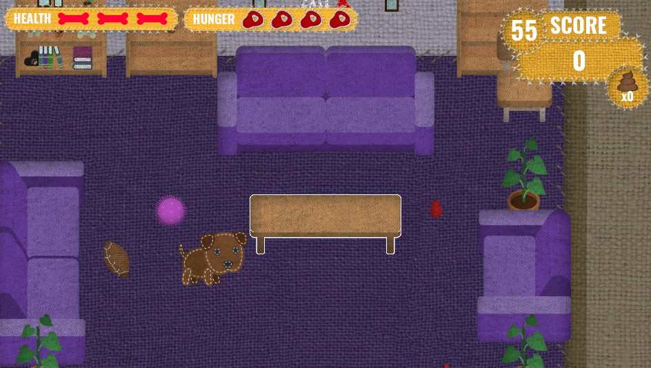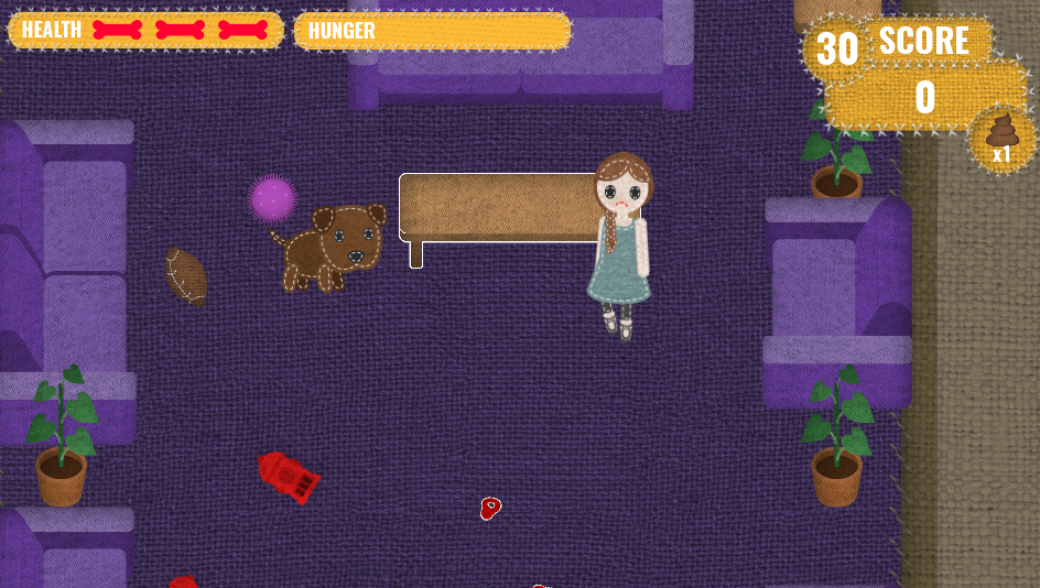 The player takes on the role of a misbehaving dog trying to clean up their mess before their owner catches them.
